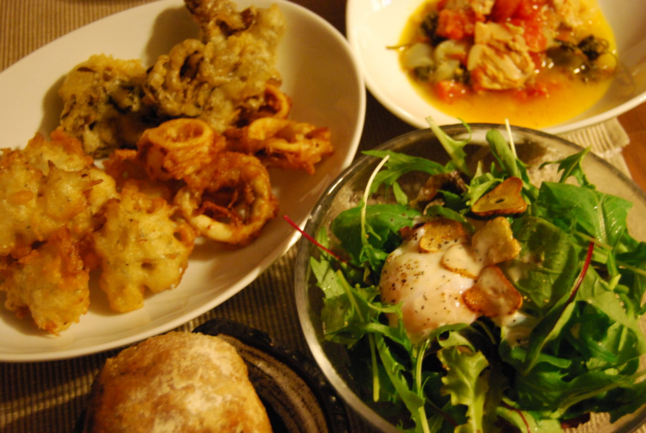 GAMAのアンチョビパンとフリットが主役の夕飯です。